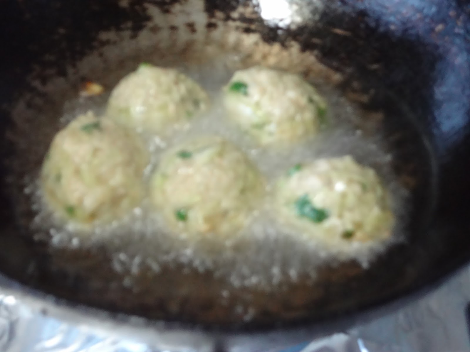 Heat oil in a pan. Deep fry these lauki koftas until golden brown in colour.